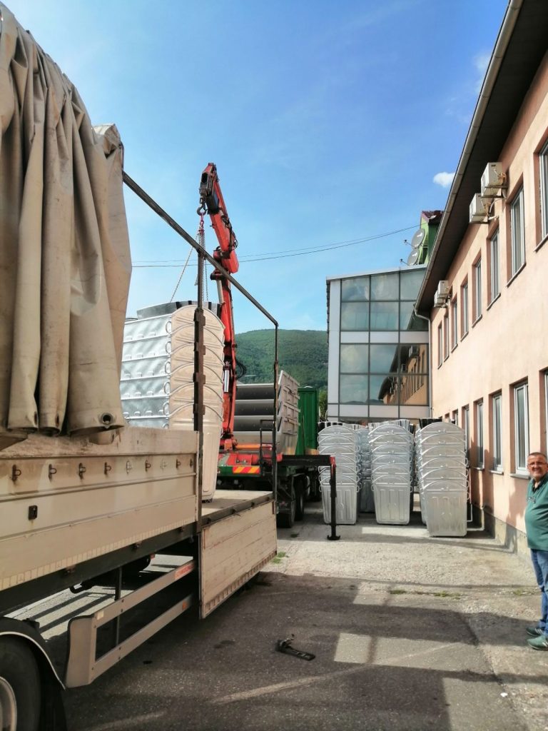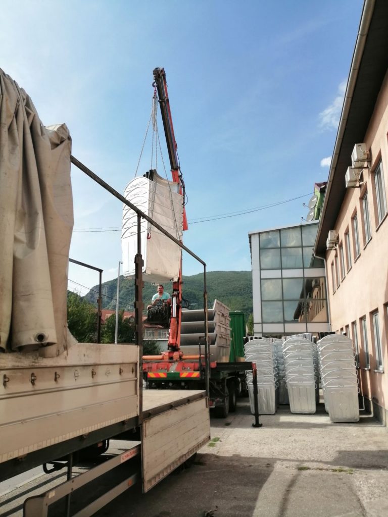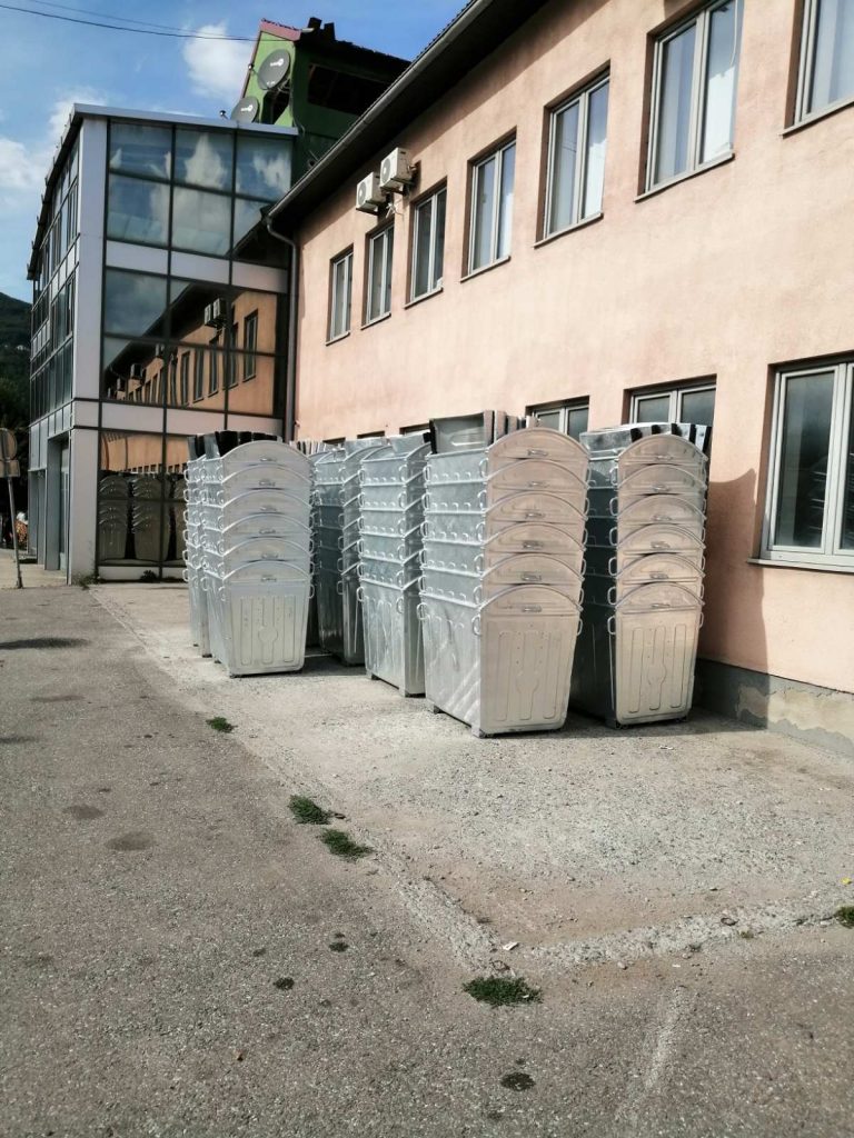 Napominjemo da će navedena oprema biti planski raspoređena na javnim površinama, na način što će dio dotrajalih i oštećenih kontejnera biti zamijenjen novim, dio će se rasporediti na novim lokacijama i jednim dijelom će se povećati broj kontejnera na već postojećim lokacijama. Kontejneri zapremine 5 m3 će se koristiti za odvoz kabastog i građevinskog otpada, a presa za obradu sekundarnih sirovina iz programa selektivnog odlaganja otpada.